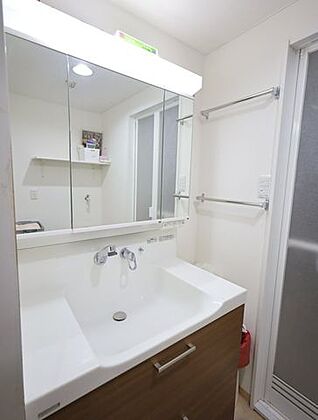 ミラーの下部に水栓が付いているタイプの洗面化粧台です!水栓周りに水や汚れがたまりづらいのでお掃除もラクラク♪