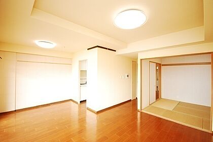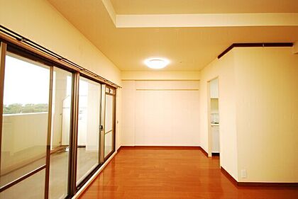地上6階部分、南西向きバルコニーに面し、陽当り・通風良好。開口部が広く、室内に陽光が降り注ぎます。【LD/約12帖】