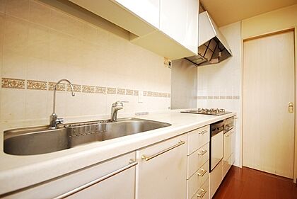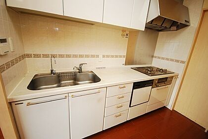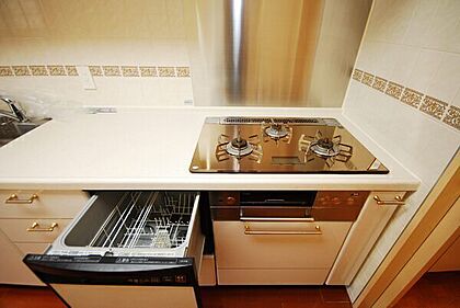 家事の負担を軽減する食器洗乾燥機、3口ガスコンロなどが搭載されたキッチン。家事がしやすい仕様です。【キッチン】