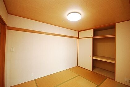 LD隣接の和室です。押入収納が備わっています。廊下・LDの2方向から出入りでき、重宝しそうです。【和室/約6帖】