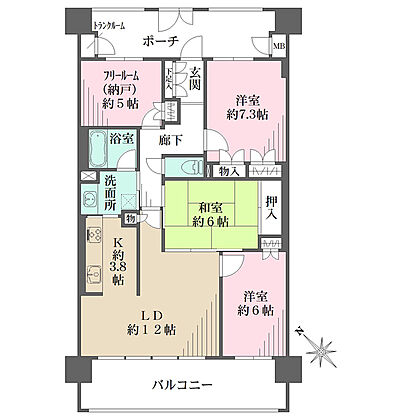 陽当り良好な南西向き。洗面所・キッチンが繋がる回遊設計。玄関前に住戸の独立性を高める専用ポーチ付き。