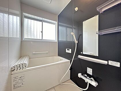 【リフォーム完成済】浴室写真です。新しいユニットバスに交換済です。1坪タイプの足を伸ばしてゆったりと入浴できるサイズです。追い焚きと自動湯張りで快適です。疲れた体を癒すのに、ユニットバスは嬉しいですね