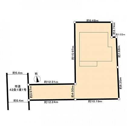 【接道】 一方 ( 公道 西 5.4m ) 路地状部分 約 50平米を含む |