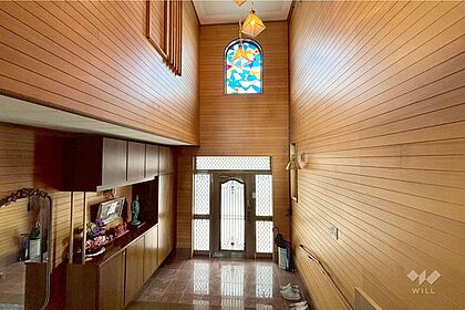 間取りは延床面積217.95平米の6LDK。外からの目線が気になりにくい2階リビングのプラン。玄関ホールは吹抜けで開放感のある造り。個室は全て6帖以上で、12帖以上の広い個室も2部屋設けられています。