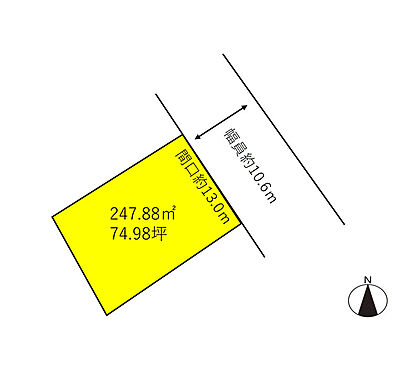| 土地面積/坪(坪単価) | 247.88m2(登記簿)/75.12坪(28.90万円) | 代表的な接道 | 一方 公道 東 10.6m ※詳細は備考欄をご確認ください |