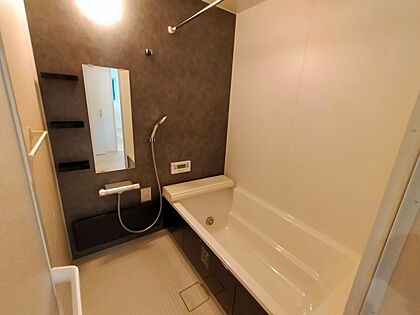 1坪風呂、天井にビルドインの浴室暖房乾燥機付きで雨の日の洗濯物もご安心下さい。