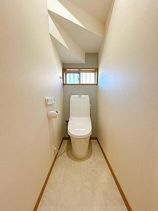 【新品トイレ】温水洗浄付きのトイレに新品交換しました。節水型でお財布にも優しい仕様のトイレを導入。壁付けボタンで便器周りのお掃除もラクラクできちゃいます。
