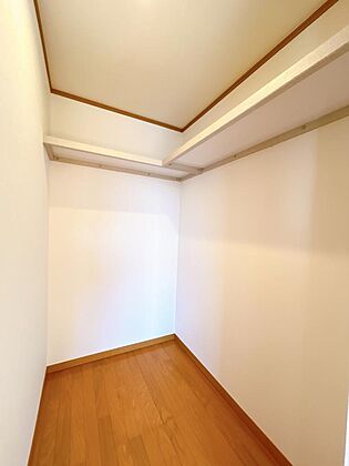 【ウォークインクローゼット】2階西側8帖の洋室にはウォークインクローゼットがついています。洋服だけでなく季節ものの家電なんかも収納できて便利です。クロスの張り替えを行いました。