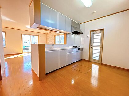 【LDK】ゆったり18帖のLDKです。対面キッチンでお料理中でもご家族との会話が弾む素敵なLDKです。天井・壁はクロス張り替え、床はクリーニングとワックスがけを行いました。