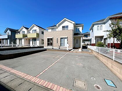 【駐車スペース】敷地内には並列で3台駐車可能です。前面道路の幅も余裕があるので、運転のニガテな方でも、安心してお車を出し入れしていただけます。駐車場は高圧洗浄を行いました。