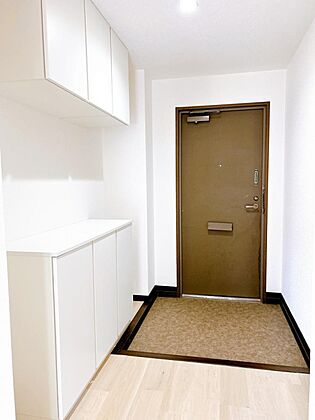 【リフォーム済】玄関の内観です。シューズボックスは新品交換を行いました。