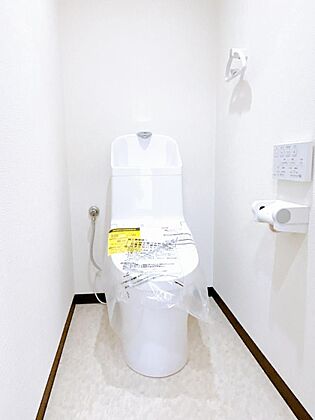 【リフォーム済】トイレは新品交換しました。クッションフロアと天井・壁クロスの張替も行いました。