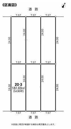 【20-1、20-2、20-3】南東間口7.57mある整形地です。