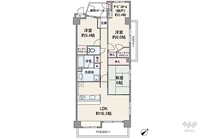 玄関前に門扉付きの専用ポーチが設けられたプライバシー性の高いプラン。ポーチ内にトランクルーム付き。LDKと洋室約6.0帖が2面採光を確保。和室はLDKと廊下の2方向から出入りが出来る2WAY動線です。