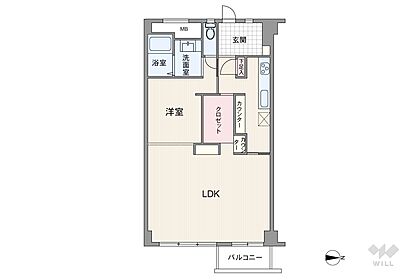 間取りは専有面積52.7平米の1LDK。バルコニー面積は3.3平米です。