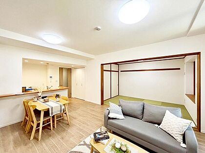 南向きで日当たりが良く、和室とつなげると開放的な空間になるLDK!