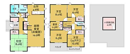 | 間取り | 5SLDK | 構造及び階数 | 軽量鉄骨 2階建て |