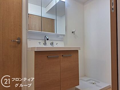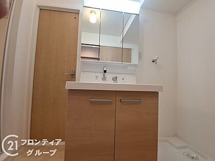 三面鏡の洗面台は、広い視野で身だしなみを整えやすく、収納力も豊富でスッキリとした空間を提供します!