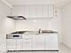 3口コンロ付きのシステムキッチンです!フラットな作業台と壁面は掃除がしやすく、清潔を保ちやすいです