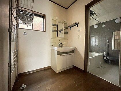 毎日お使いになる洗面所は、明るく清潔感のあるスペースです!洗面台の鏡横には小物を収納できる棚がついていますので歯ブラシや髭剃りなども保管できます。