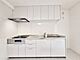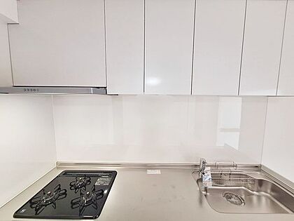 3口コンロ付きのシステムキッチンです!フラットな作業台と壁面は掃除がしやすく、清潔を保ちやすいです