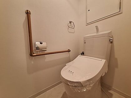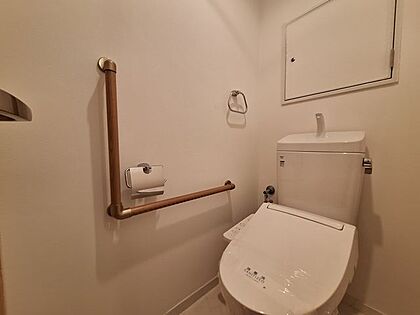 手摺付きのトイレは、安全で使いやすく、特に高齢者や子供に優しい安心の設備です!