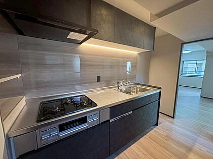 焼いたり煮たりと一度にたくさんのお料理を作ることのできる便利な3口コンロがついたシステムキッチンは豊富な収納と食洗機付き。食後の片づけが楽になるからママの自分時間が増えてにこにこ。