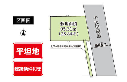 [区画図] 道路より平坦地!スーパーまで徒歩約7分のお買い物に便利なエリアです♪