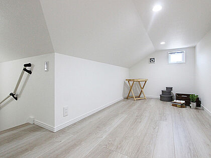 [施工例:固定階段式グルニエ] 固定階段なので大きな荷物も両手で運べて安心♪普段使わない思い出の品やアウトドアグッズなどを一箇所に収納することができます!
