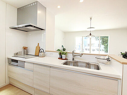 [施工例:キッチン] IHコンロ採用でお手入れラクラク♪床下収納付き!