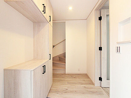 [施工例:玄関] 広々としたゆとりある空間に、収納力あるシューズボックス付き。