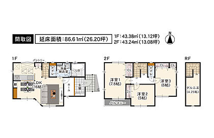 《建物参考プラン》間取図 4.25帖の「グルニエ収納」やゆとりある玄関で暮らしやすい3LDKの間取りプラン♪