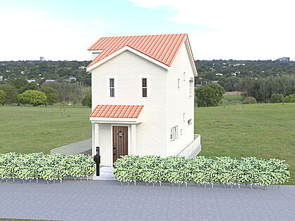 [外観] 完成予想パース 外観は美しく、間取りは収納力ある暮らしやすいプランです♪