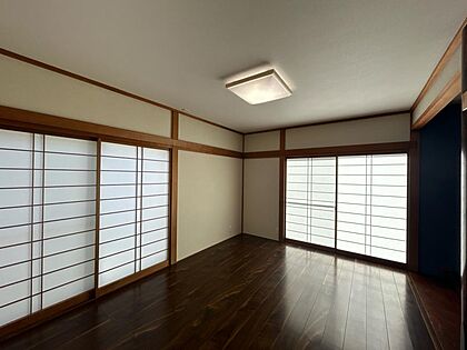 【リフォーム済】1階和洋室です。天井の壁・天井のクロスを上張りして仕上げました。照明の交換も行いました。