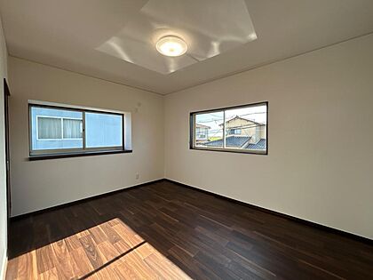 【リフォーム済】2階洋室です。壁・天井のクロス張替え、照明交換等を行いました。