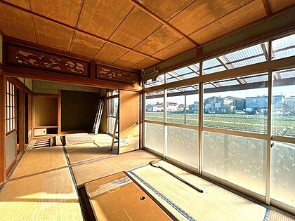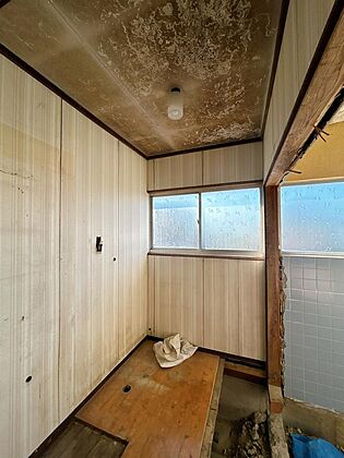 【リフォーム前】北東側6帖洋室に間取り変更し、フロア張り、クロス張り、建具交換、火災警報器設置、照明器具交換などを行います。