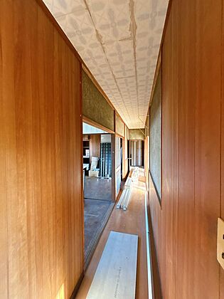 【リフォーム前】廊下は、フロア張り、クロス張り、照明器具交換などを行います。