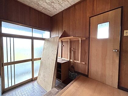 【リフォーム前】玄関ホールはシューズボックス交換、フロア張り、クロス張り、照明器具交換などを行います。