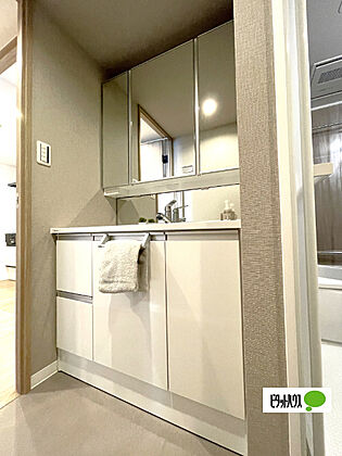 便利な三面鏡の洗面化粧台です