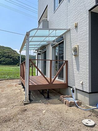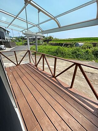ウッドデッキがありお洗濯はもちろんのんびりと過ごすのもいいですね。