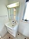 三面鏡の裏側には収納棚を確保。スキンケア用品やヘアケア用品などをすっきり整理できます。