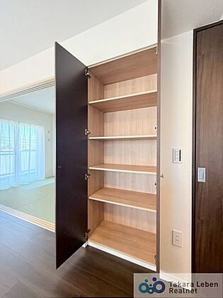 和室約5.0帖。和室には約1畳分の押入付き。来客用のお布団やおもちゃをしまったり、あると便利な押入です。