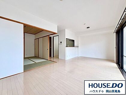 気持ちの良い光と風が差し込むリビングスペース。和室もあり開放感があります。ダイニングテーブルやソファーを置いても十分な広さです♪