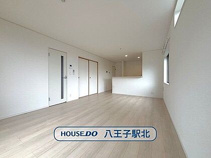リビング:南向きで日当たり良好のLDK。南側に大きな窓を設置することで明るい空間です。キッチンからリビング全体が見渡せ調理しながら家族と会話も弾みそう。