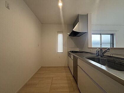 キッチン:吊戸棚がないので、圧迫感がなく視界が広がります。お子様の様子も見ながら家事が出来るのは助かりますね♪