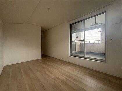5.7帖洋室:南向きの大きめの窓がたっぷりと日差しを入れてくれます。バルコニーにすぐ出れるので、お布団を干しやすくなっています。