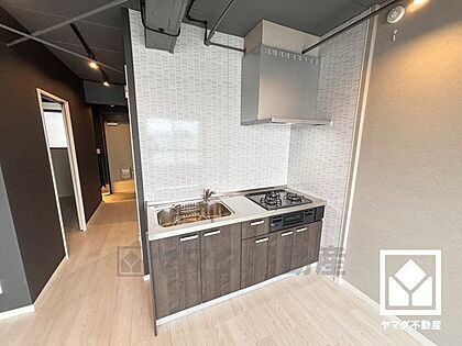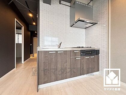 キッチンは空間を有効活用できる壁付けタイプ。毎日の料理がもっとスムーズになる、便利な3口コンロ付き。