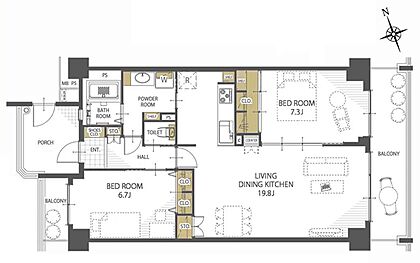 LDK19.8帖:清潔感があり、明るく落ち着いた雰囲気の室内空間!