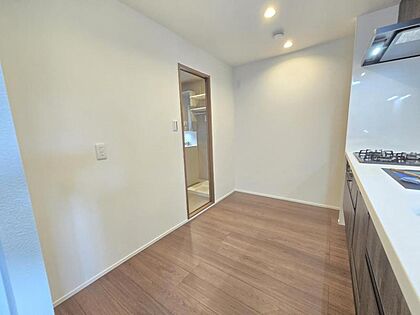 家事導線の良い2WAYキッチン。リビングダイニングにも洗面室にも抜けられます。