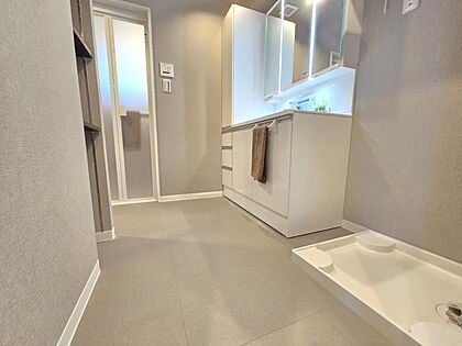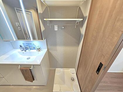 洗濯機置き場もある広めの洗面室は身支度もしやすいですね!